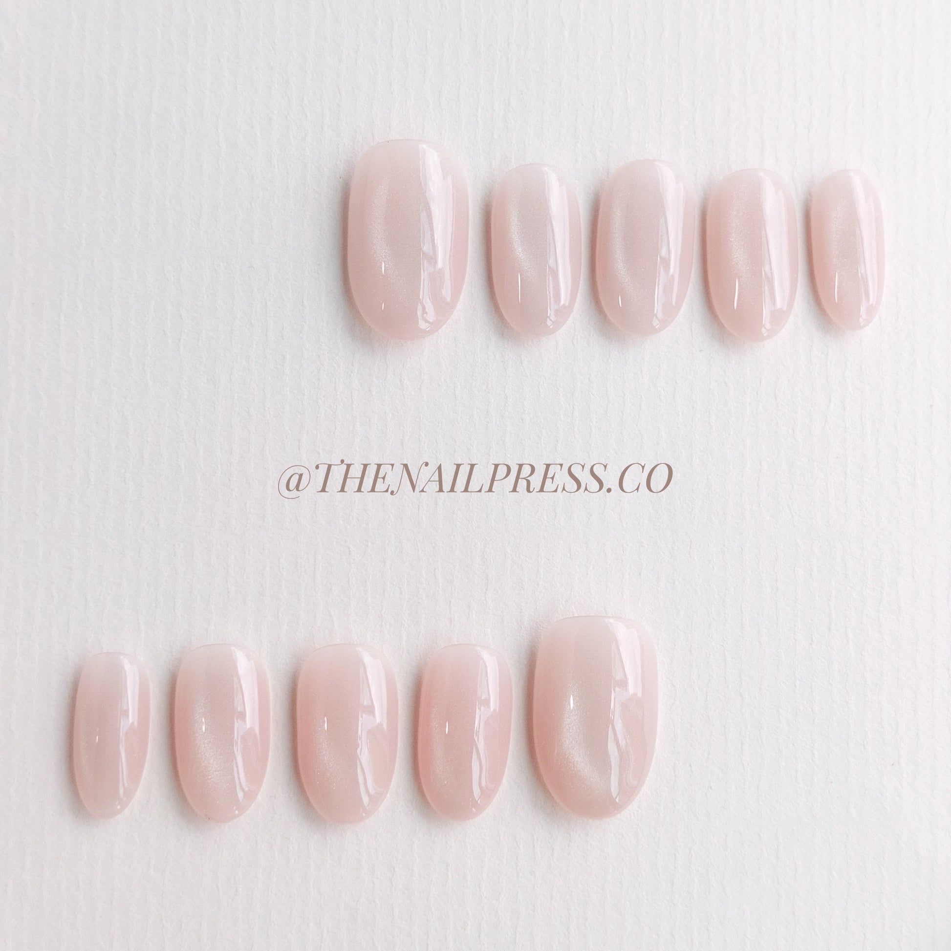 Embrace soft elegance with Blush Veil Cat-Eye. The delicate blush hue is enhanced by a shimmering cat-eye effect, creating a subtle, sophisticated look that captures light beautifully. Medium oval rounded shape provides a graceful, flattering silhouette. Handmade, reusable, and salon-quality for effortlessly beautiful nails.