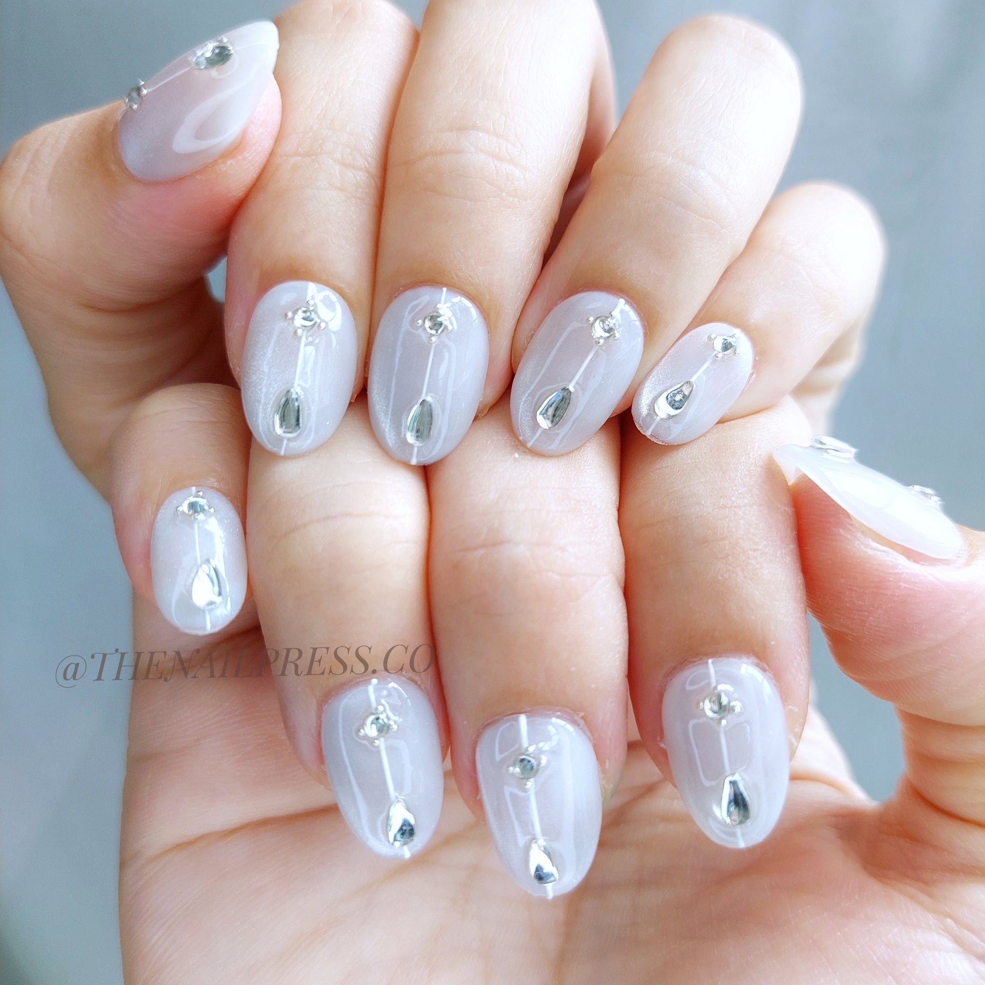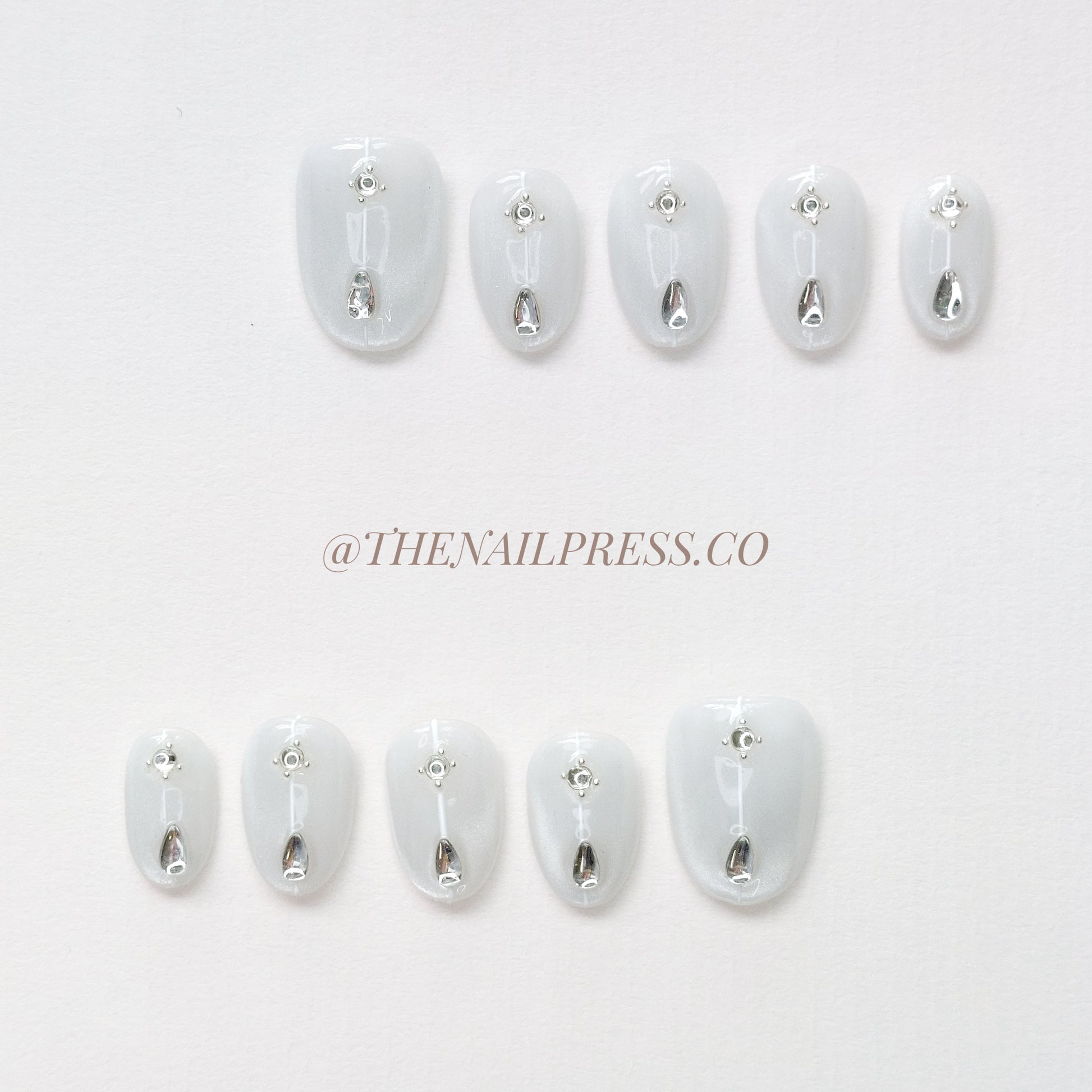 Embrace subtle elegance with Luminous Path. A soft white-grey cat-eye base provides a smooth, glowing backdrop, accented with a minimalist line design and a delicate gem for refined sparkle. The short rounded shape enhances its classic appeal, perfect for those who love understated sophistication with a hint of glamour. These handmade press-on nails offer a salon-quality finish with effortless application.