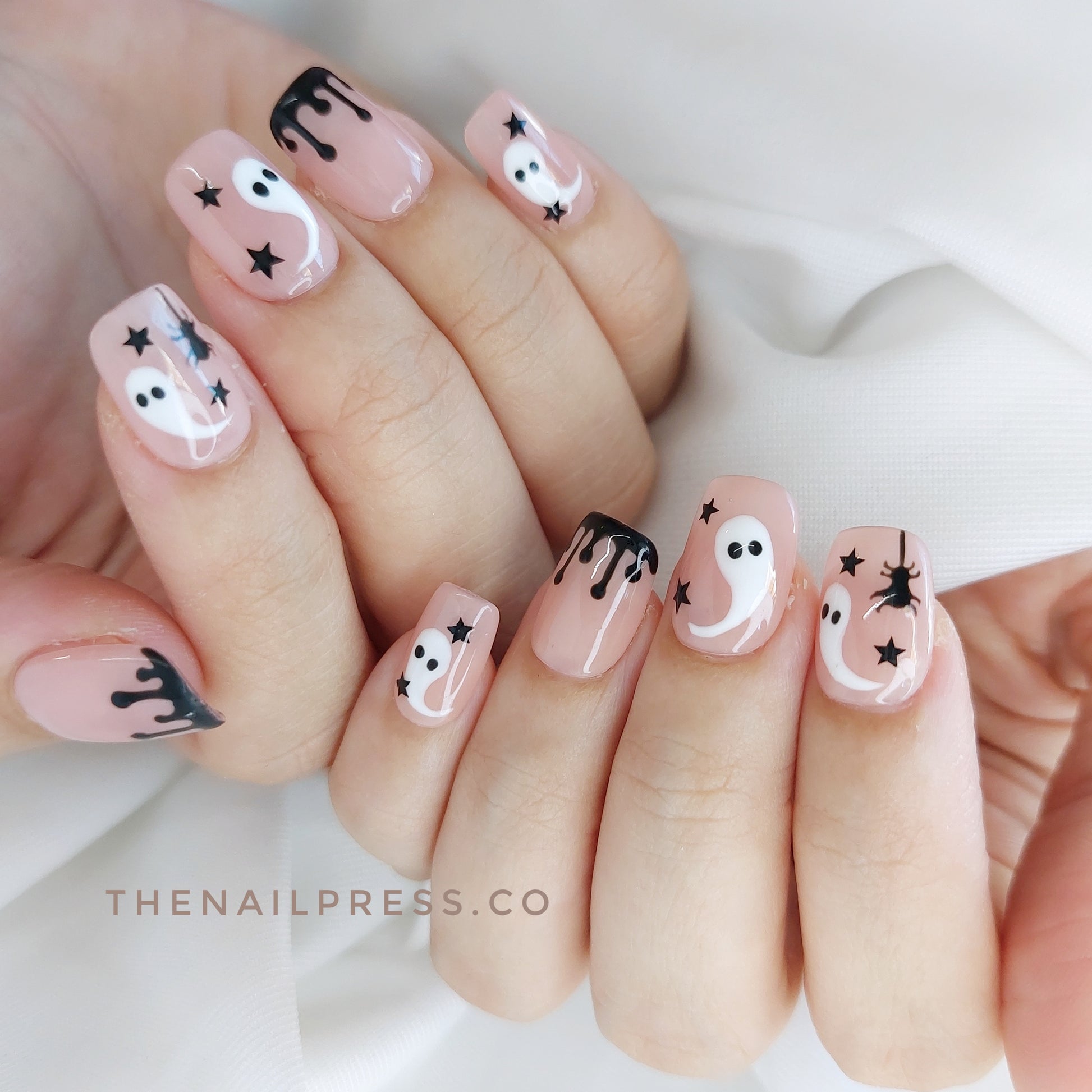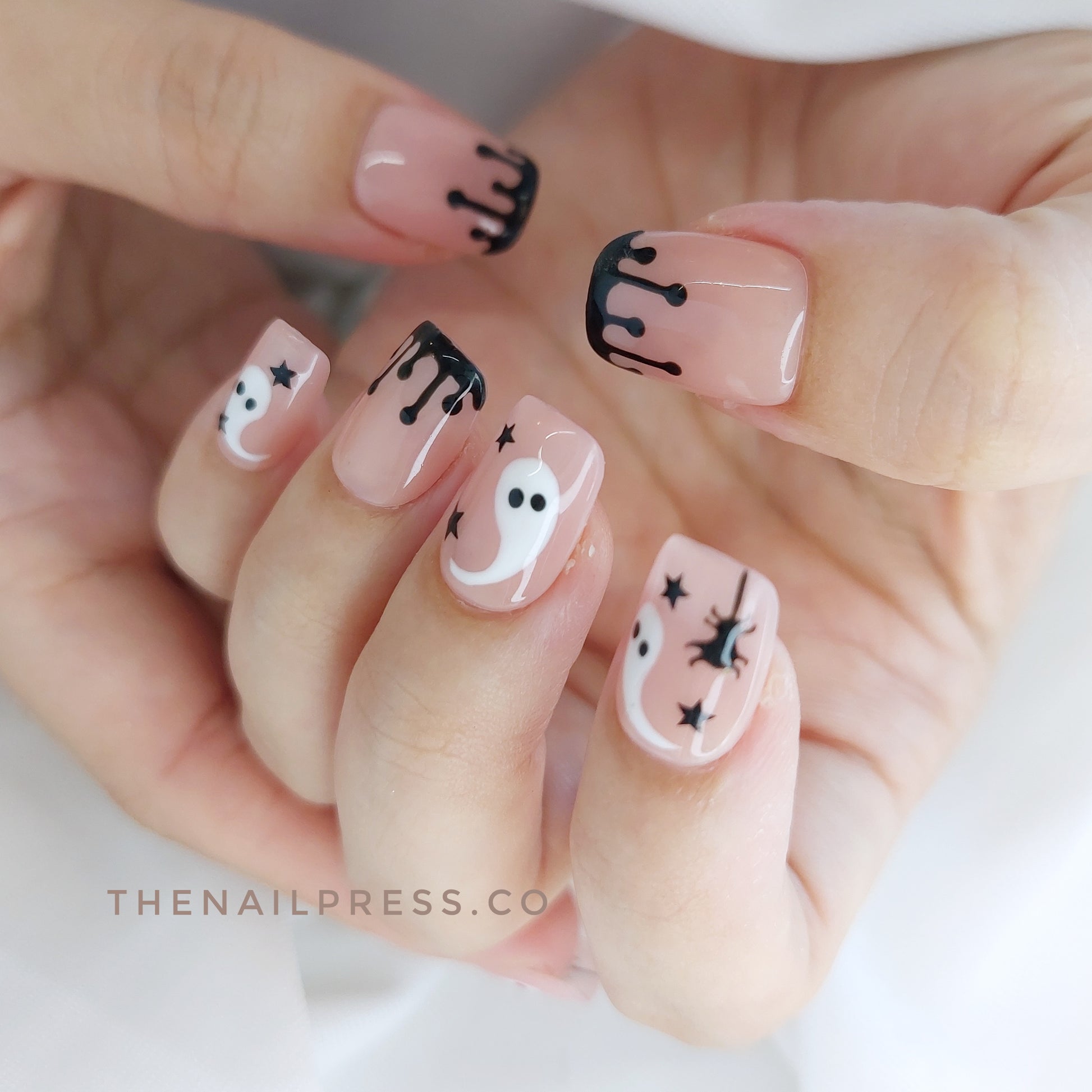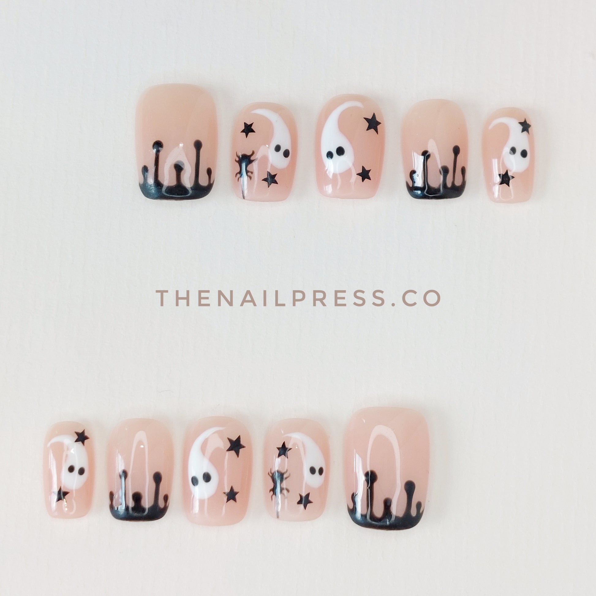 Eerie dark drips in Phantom Drips evoke the essence of Halloween with a hauntingly stylish look. The short square shape provides a sleek, flattering finish, perfect for embracing your inner phantom. These handmade press-on nails provide a salon-quality finish with effortless application, ideal for Halloween parties or seasonal flair.