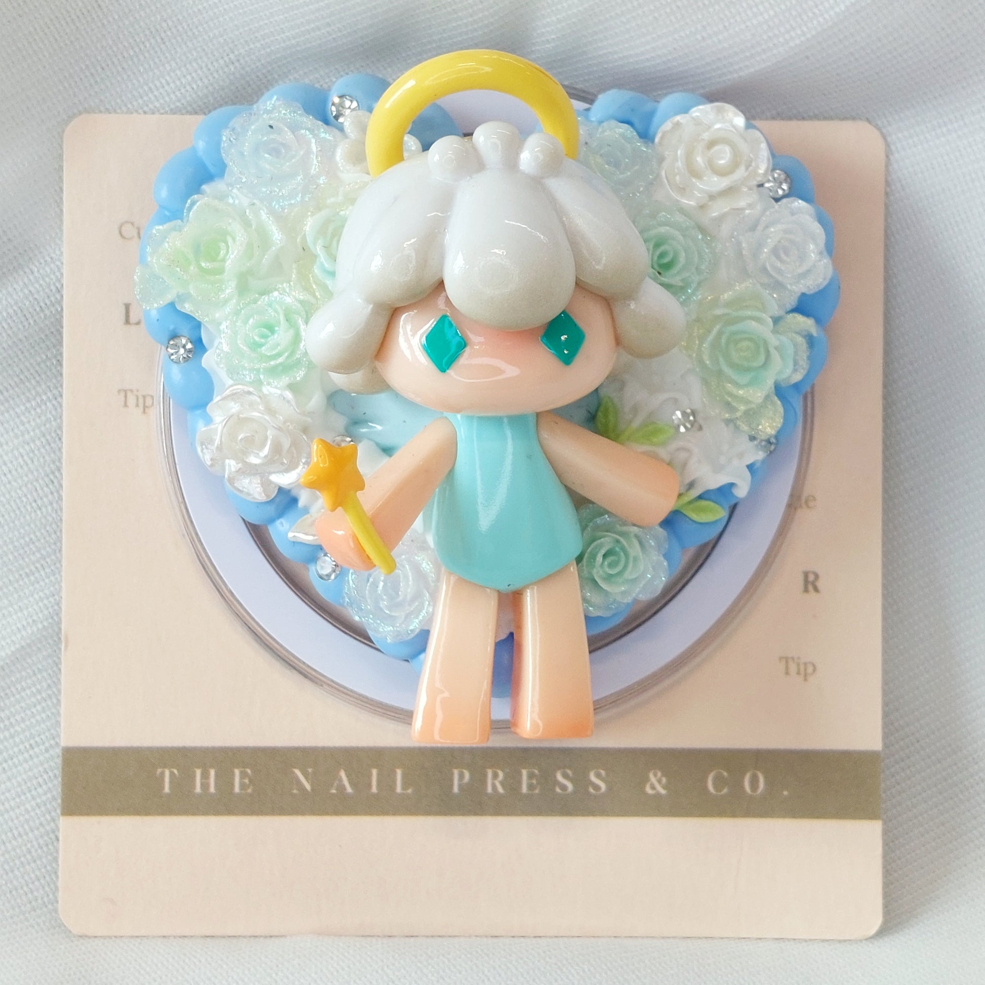 Bring a playful charm to your phone with Amused from the Soly Mini MBTI Emotion Series. Crafted from an authentic Heat Up mini figurine, this design features a sweet blue base adorned with delicate white roses. Finished on a unique heart-shaped base, it’s a perfect blend of fun, sweetness, and individuality. Handmade and unique, it’s functional as well as stylish.