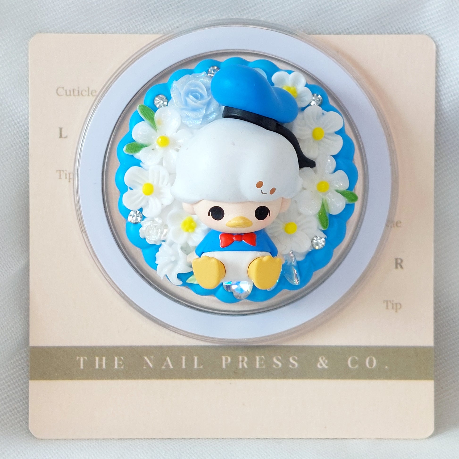 Add a playful, cheerful touch to your phone with Dimoo Donald Duck from the Dimoo World x Disney Series. Featuring bright blue tones accented with crisp white floral details, this design is fun, vibrant, and full of charm. Handmade and unique, it’s functional and finished with an authentic Pop Mart Pop Bean.