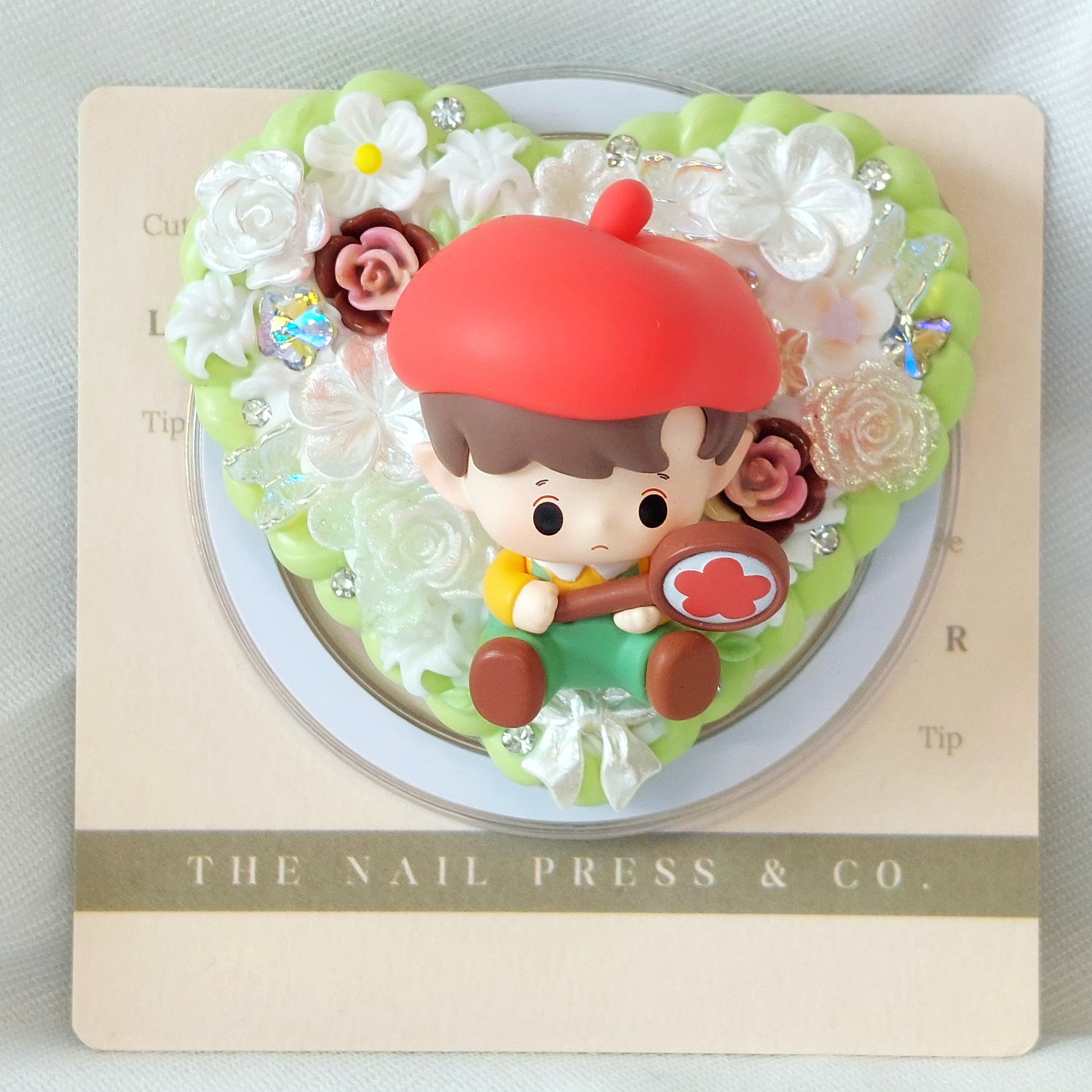 Bring your phone to life with Hacipupu from the Going Out With Me Series. This playful design features a refreshing green base with bright red accents and delicate floral details that pop with cheerful charm. Handmade and unique, it’s functional and finished with an authentic Pop Mart Pop Bean.