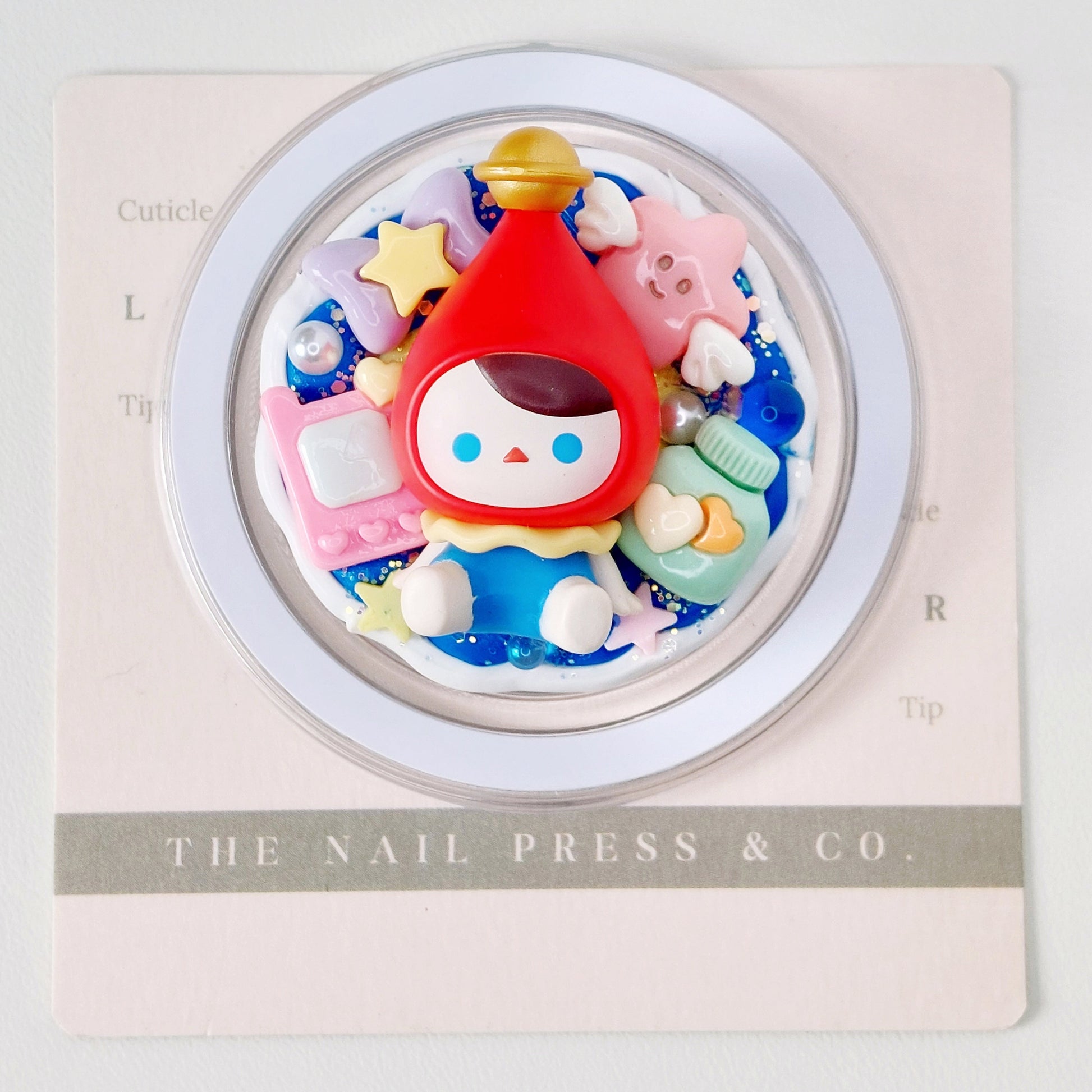 Bring a bold, whimsical charm to your phone with Pucky from the Classic Sitting Series. Featuring a striking red and blue base adorned with cute embellishments, this design is fun, playful, and full of personality. Handmade and unique, it’s functional as well as stylish, finished with an authentic Pop Mart Pop Bean.