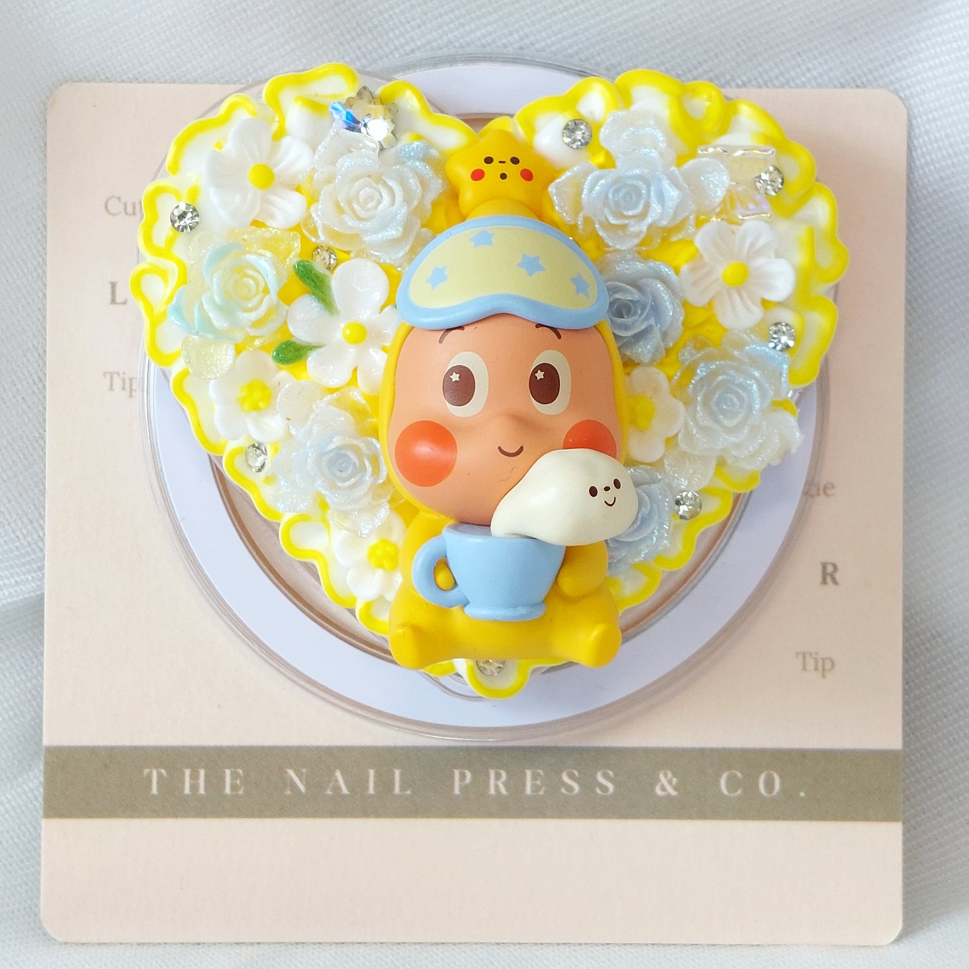Brighten your phone with Twinkle Twinkle from the Going Out With Me Series. Featuring a sunny yellow base with cheerful floral details, this playful design radiates happiness and charm. Handmade and unique, it’s functional and topped with an authentic Pop Mart Pop Bean.