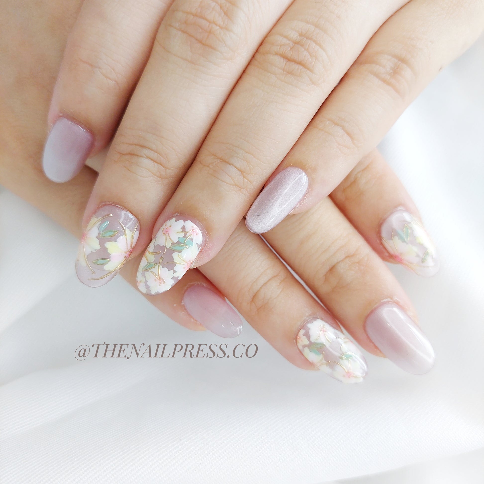 A soft pink cat-eye base with delicate pink and yellow florals evokes the warmth of sunlit petals in Sunblush Meadow. The medium oval rounded shape adds a graceful touch to this fresh, radiant look. These handmade press-on nails are reusable and offer a salon-quality finish for effortless beauty.